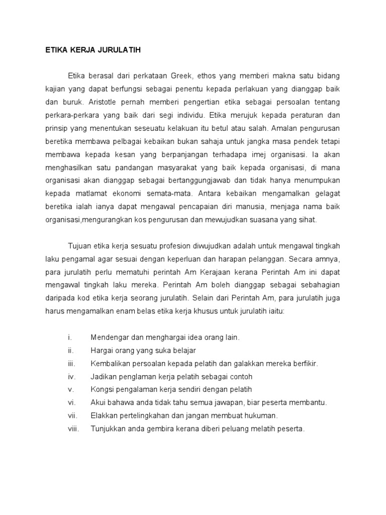 Kebaikan Mematuhi Etika Kerja - Ilmu tentang kesusilaan yang from demodokumentips Di samping itu etika kerja profesional juga ditekan dalam kehidupan seharian. Kebaikan mematuhi etika kerja profesional. Husaini skm mkes disiplin etika kerj a dan kepuasan kerj a disusun oleh.